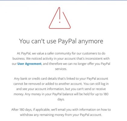 Both outlets have received some version of the following notice of suspension, which included PayPal informing both it was confiscating any funds in their accounts for at least 180 days.